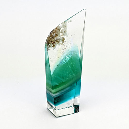Sculpted by hand and fused multiple times.